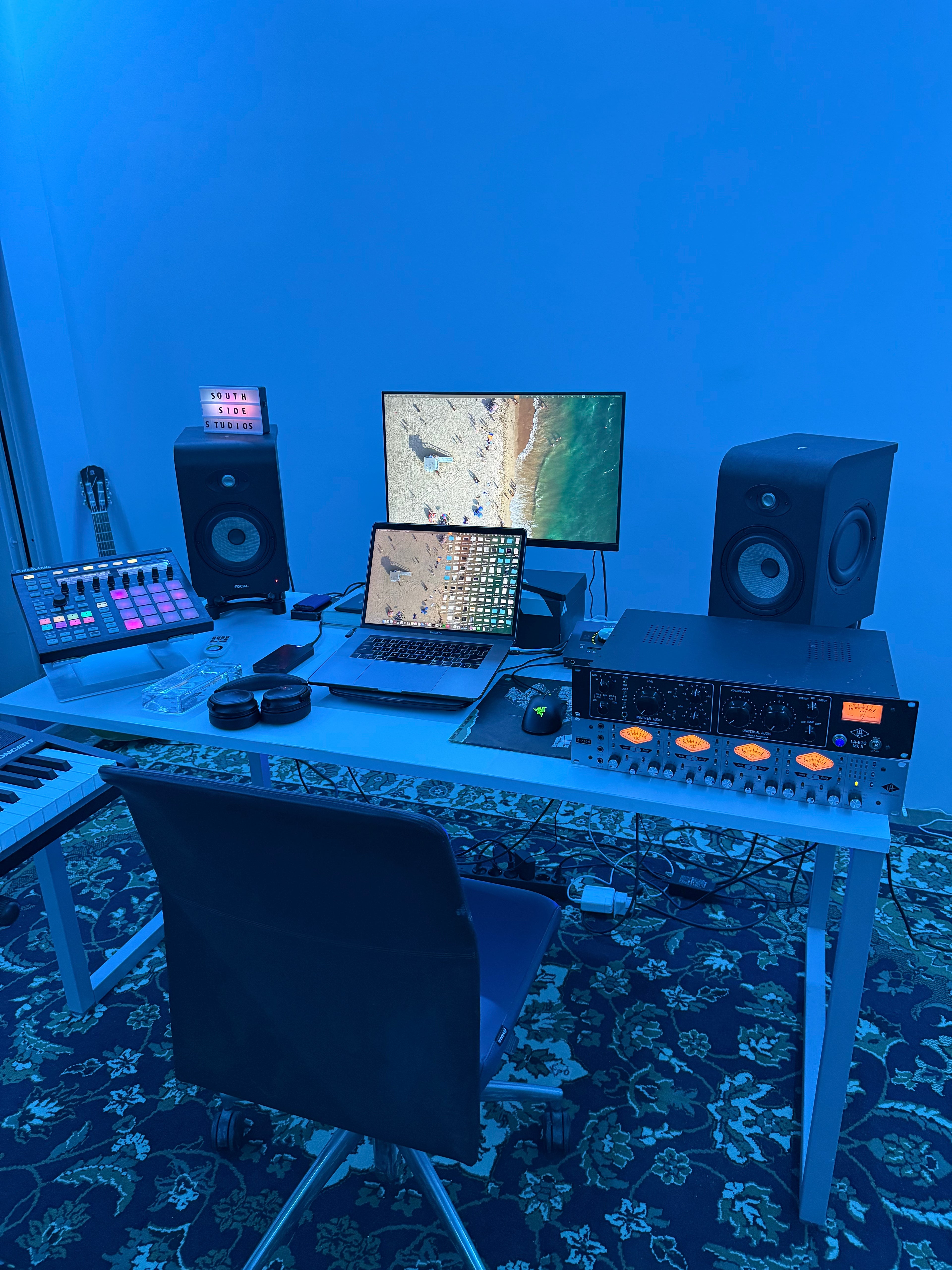 South Side Studios, founded in 2025 by Philavie, is a boutique studio for artists, bands, producers and all creators. Whether you want to record, rehearse, practice, produce, mix, or master, we provide the ideal environment to create and refine your sound.